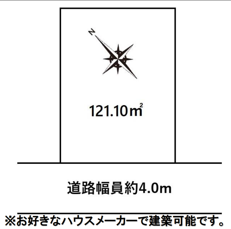 | 土地面積 | 公121.1㎡(36.63坪) | 接道 | 南西側(公道)幅 約4.0m 間口 約8.00m |